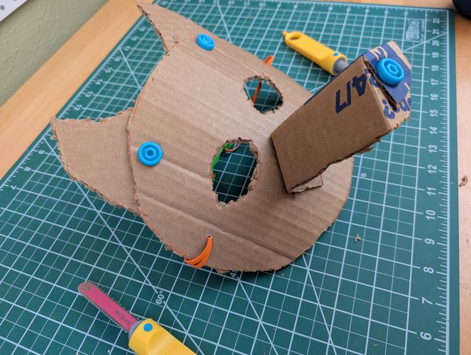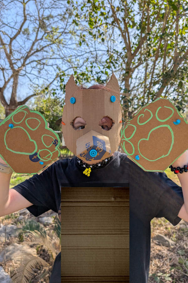 This adorable wolf mask was created using recycled cardboard and Makedo tools, proving you don't need much to make something awesome.