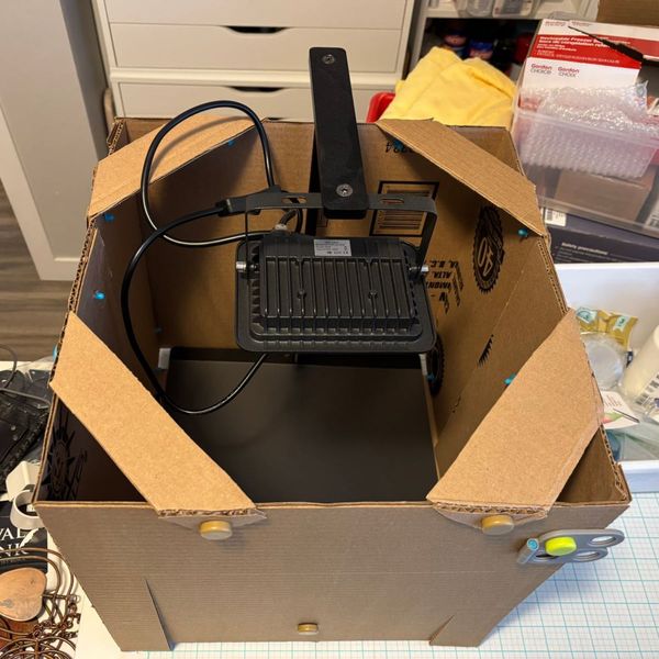 Making objects and small-scale manufacturing at home sometimes means you need to be innovative with your equipment. This cardboard UV curing station was an easy build and allows the hobby maker to do more with their DIY designs.