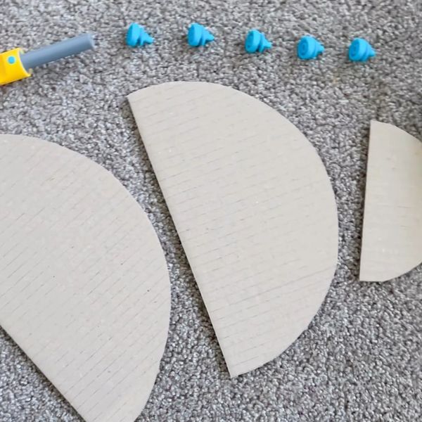 The first step is to cut out three semicircles of cardboard, according to the following sizes:
