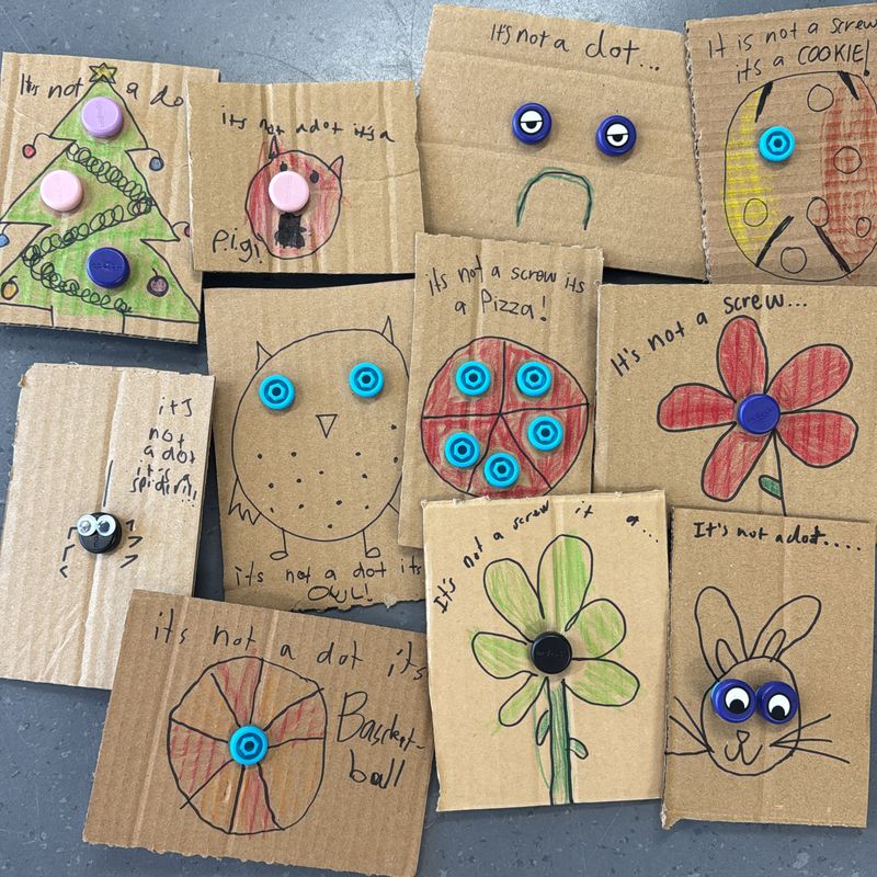 Using the book "Not a Stick" as a mentor text, the Changemaker Jessica Newton challenged students to think about Makedo Scru-Dots as more than just a dot to practice writing skills and problem-solving!