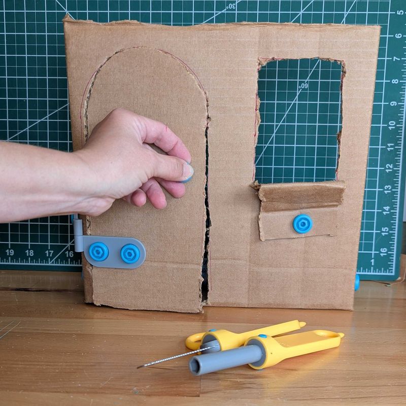 Introduce movement with the Makedo Spin-Hinge. Challenge students to create a portal or door leading into their structure.